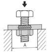 - (3)プレス機によりナッ卜の首下を母材に沈み込ませます。注)首下を完全に圧入してください。